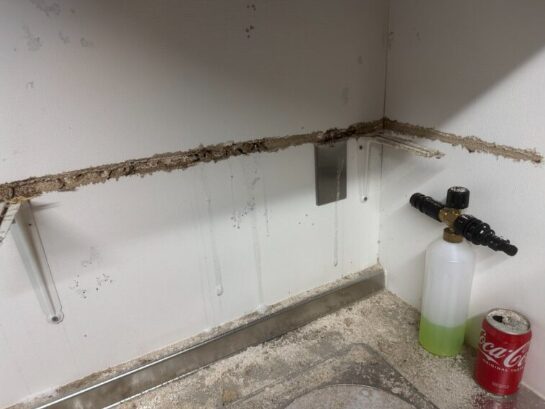 ホテル1階の事務室がシロアリにまるっと食べられておりました。原因はホームセンターで購入した板材をひそひそ食べていた模様です。
